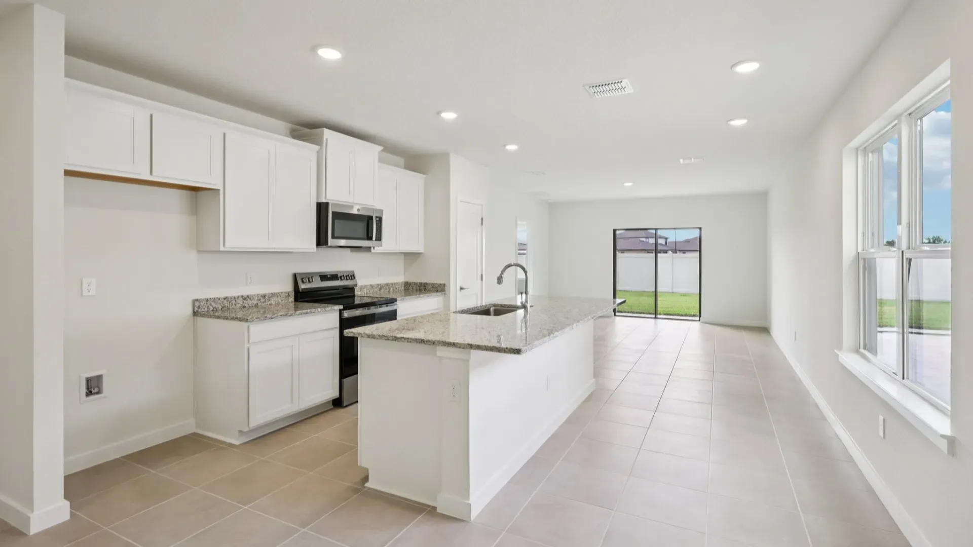 Introducing a newly constructed single-family home in Lakeland — a thoughtfully designed residence that blends functional living with quality craftsmanship. This 3-bedroom, 2-bath, single-level home offers approximately 1,480 sq. ft. of living space and a 2-car garage, delivering both comfort and convenience for everyday life. Step inside to an open concept floor plan that maximizes space and natural light. The modern kitchen features generous cabinetry, granite countertops, and a central island — ideal for meal preparation and casual dining. The adjacent living and dining areas provide a seamless flow for daily routines and entertaining. The private primary suite serves as a quiet retreat, complete with a walk-in closet and an ensuite bathroom with dual vanities and granite finishes. Two additional bedrooms offer flexibility for family, guests, or a home office. Additional highlights include a covered lanai for outdoor enjoyment, smart home features such as keyless entry and programmable thermostat, and a functional layout that supports modern living. Located in a master-planned community in Lakeland, this home represents a move-in ready option with contemporary appointments and thoughtful design throughout.