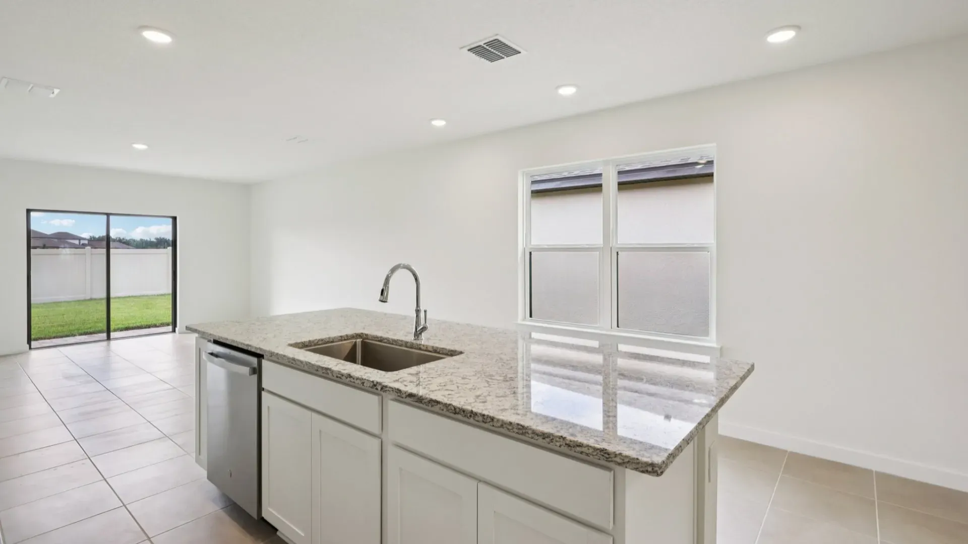 Introducing a newly constructed single-family home in Lakeland — a thoughtfully designed residence that blends functional living with quality craftsmanship. This 3-bedroom, 2-bath, single-level home offers approximately 1,480 sq. ft. of living space and a 2-car garage, delivering both comfort and convenience for everyday life. Step inside to an open concept floor plan that maximizes space and natural light. The modern kitchen features generous cabinetry, granite countertops, and a central island — ideal for meal preparation and casual dining. The adjacent living and dining areas provide a seamless flow for daily routines and entertaining. The private primary suite serves as a quiet retreat, complete with a walk-in closet and an ensuite bathroom with dual vanities and granite finishes. Two additional bedrooms offer flexibility for family, guests, or a home office. Additional highlights include a covered lanai for outdoor enjoyment, smart home features such as keyless entry and programmable thermostat, and a functional layout that supports modern living. Located in a master-planned community in Lakeland, this home represents a move-in ready option with contemporary appointments and thoughtful design throughout.